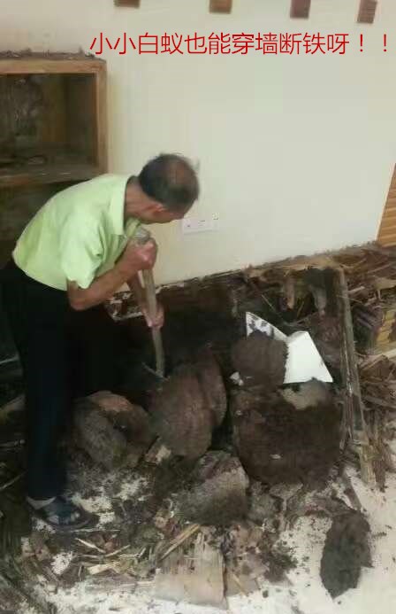 敲開客廳墻角,隔熱板已經被掏空,成千上萬的白蟻不斷啃噬著木頭,儼然一個個小小的白蟻王國。近日,珠海市恒建白蟻蟲鼠防治有限公司技術人員李師傅在御龍山莊某別墅關女士家中見到這幅景象也頗為吃驚。大概4平方米的墻體已經被白蟻占據,估計有數十萬只白蟻。 “從事滅蟻工作二十年的李師傅還是頭一次見到這么大的白蟻巢,估計得有200多斤重。”幸好發現及時,如果再發展下去,對整幢別墅的影響將會是破壞性的。屋主關女士介紹說,往年每到春末夏初的時候,家里就莫名其妙的跑出許多小飛蟲,而且數量龐大,大多趴在墻上,飛的時候還會有翅膀掉下來,用了許多殺蟲劑,結果效果一直不是很好。一家人被小飛蟲給折騰的十分難受,甚至有搬走的想法。“前些日子,小飛蟲又出現了,而且比往年的多出了一倍,有經驗街坊告訴關女士可能是白蟻作祟。”于是關女士撥打了本公司電話尋求幫助,接到電話公司技術人員李師傅第一時間趕到現場,經過現場勘查發現“元兇”—一大家子的白蟻。“這種白蟻個頭不大,大約1厘米長,翅翼較長,乳白色,橢圓形。但數以萬計的白蟻同時飛出來,造成的視覺沖擊可想而知。”李師傅介紹說,關女士家客廳這面墻有塊防水層,防水板是木質的。最近這些天天氣變化較頻繁,加上適宜的氣溫,就為這些白蟻提供了很好的繁殖環境,于是白蟻就出來了。對于家中的木質裝潢造成一定的影響,但它不會攻擊人類。同時,市民發現白蟻后,不要盲目使用殺蟲劑噴殺,不要隨意搬動被白蟻危害的物品或破壞蟻路、蟻巢,否則會使白蟻四處逃散,造成蟻害面積擴大,從而增加滅治的難度,應妥善保護好白蟻危害現場,及時與專業白蟻防治單位聯系進行滅治。