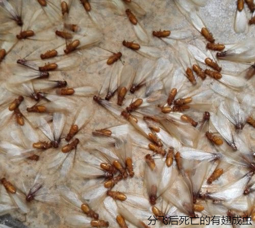 或有翅型:體軀骨化,黃、褐或黑色,有兩對(duì)發(fā)達(dá)的翅。每年4-6月是其分飛高峰期,特別是在春夏雨后悶熱時(shí),大量長(zhǎng)翅繁殖蟻從蟻巢中飛出,在離巢不遠(yuǎn)處的建筑物附近低飛,飛行時(shí)間很短,這種現(xiàn)象稱為婚飛或群飛(分群)。群蟻在低空飛舞,好像在開舞會(huì),各自毫無拘束地自由選擇對(duì)象。"情投意合者"飛落地面,各自脫掉翅膀,雌雄成雙追逐,通常為雌前雄后,完成"婚配"大事。配對(duì)后的雌雄成蟲經(jīng)一段時(shí)間后,便開始尋找合適場(chǎng)所,建筑新巢"定居"。入穴后,雄蟲常用口器舔舐雌蟲的腹部,有時(shí)雌雄蟲彼此舔舐,然后產(chǎn)卵,繁殖后代,另立新的群體。這對(duì)"新婚"的雌雄蟻,就是未來新群體的母蟻和父蟻,也就是新群體中的蟻后和蟻王。大多情況下,這對(duì)伴侶終身過著"一夫一妻制"的文明社會(huì)生活。但不是婚飛中的所有個(gè)體都能成雙建立新群,當(dāng)它們大量飛出時(shí),常被各種鳥類、捕食性昆蟲或其他動(dòng)物吃掉,往往只有其中的少數(shù)能夠幸存下來,但盡管是少數(shù),也足以維持其種族繁衍,并造成對(duì)木質(zhì)建筑物的危害的了,王后躺在王室中可是專門"生育"的,到一定時(shí)期又有成蟲出飛建立新的群體。